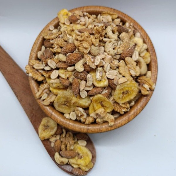 Nueces mariposas , chip de banana, castañas, maní salado y almendras