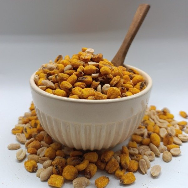 A diferencia del mix cervecero. Solo tiene maíz frito y maní con sal.